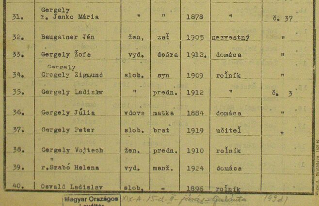 A II. világháborút követően minden magyar nemzetiségű pedagógust a szlovák hatóságok elbocsátottak, így Gergely Péter is állás nélkül maradt és „háborús bűnösként” családjával és tágabb rokonságával egyetemben a Benes dekrétumok értelmében a kitelepítésre ítéltek listájára került.