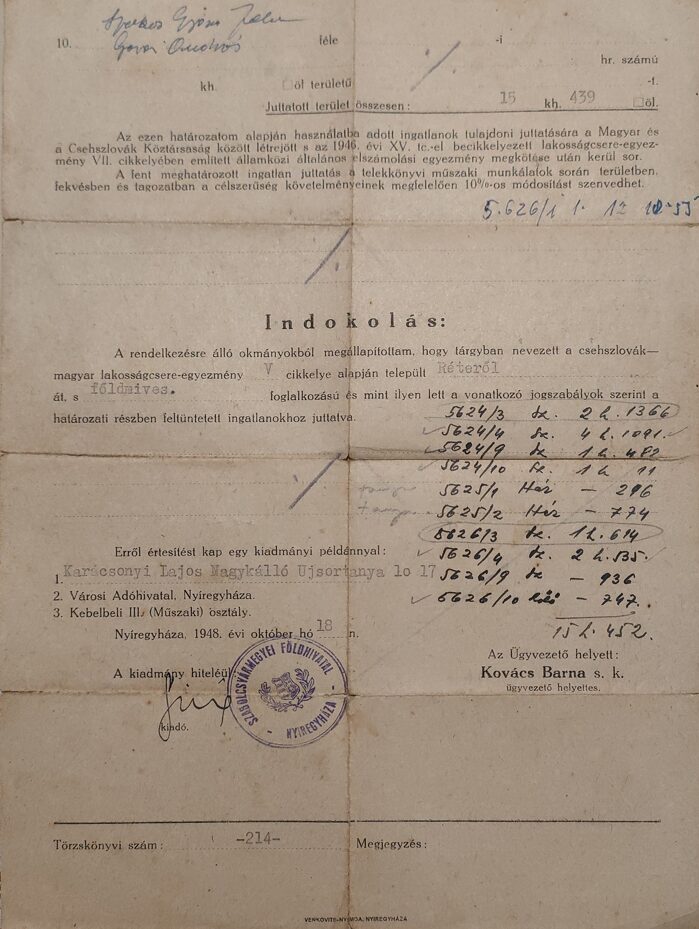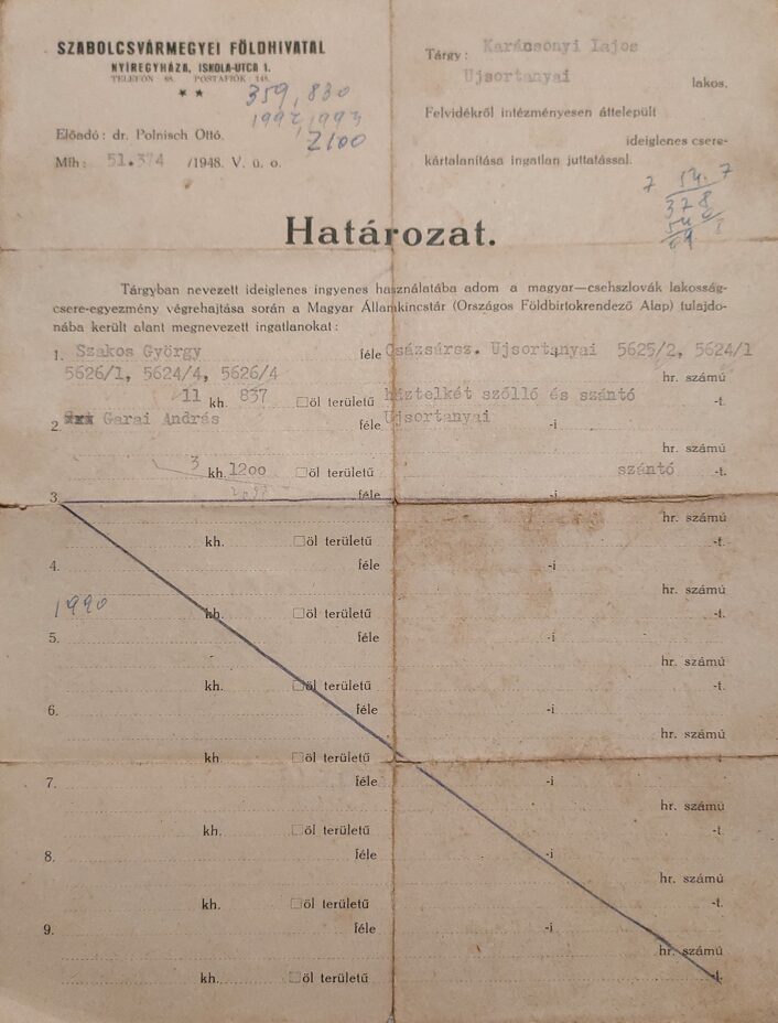 Karátsony Lajos és családja 1947. április 24-én az Ma-25-ös számú transzporttal került szintén Nagykállóra, az Újsor-tanyára került. Új életüket ismét a mezőgazdaságra alapozva kezdték meg, majd a helyi termelőszövetkezet tagjaivá váltak. A kényszerű újrakezdés évei kemény munkával és alkalmazkodással teltek, de a család összetartása erőt adott a megmaradáshoz.