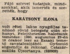 Ilona 1990 nyarán hunyt el. Származását és gyökereit soha nem feledte; ő is a nyíregyházi temetőben nyugszik, bátyjával egy sírban.