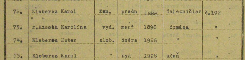 A kitelepítés nemcsak a szűk családot, hanem a tágabb rokonságot is sújtotta. A deportálást nem kerülte el Károly húga, özv. Macsicza Andrásné, született Klebercz Eszter fiával együtt. Elhurcolták unokatestvéreit is – Fodor Lajost, Szloboda Lajost, Gézát és Jolánt családjaikkal –, valamint nagybátyját, Szloboda Kálmánt is. A család szétszakadt, gyökereitől elszakítva kezdett új életet.