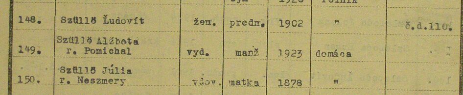 A front átvonulása és a háború befejezése után újabb sorscsapás érte a családot. A csehszlovák hatalomátvételt követő magyarellenes intézkedések a Szüllő családot is sújtották: kitelepítésre ítélték őket. Jogaiktól és vagyonuktól megfosztva, 1947. május 16-án az Ma55. számú transzporttal hagyták el otthonukat.