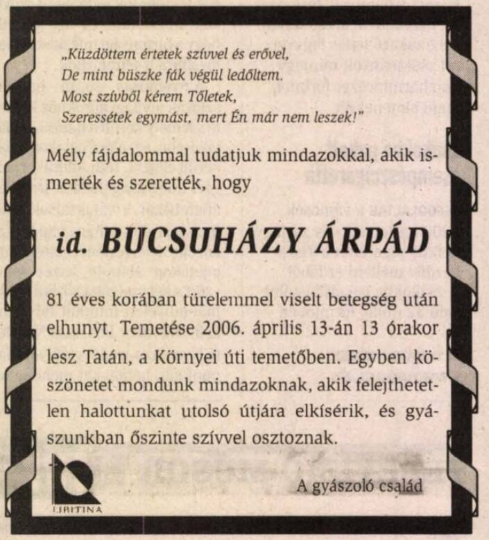 Árpád 2006-ban hunyt el, Tatán temették el.