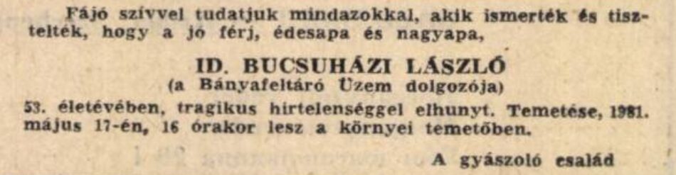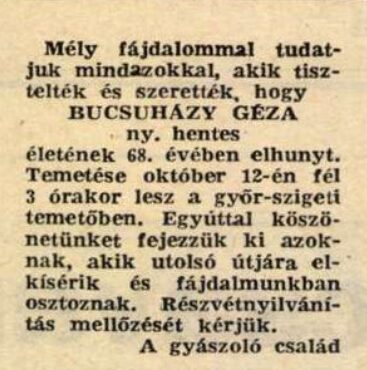 Bucsuházy Sándor szintén megnősült és Környén telepedett le .