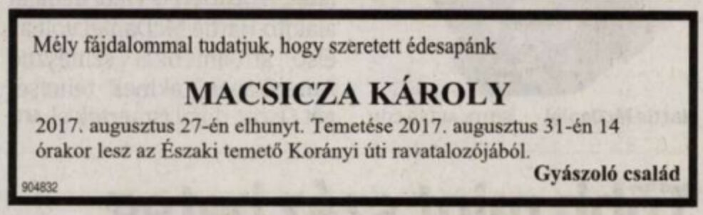 Károly 2017-ben hunyt el, Nyíregyházán helyezték örök nyugalomra.