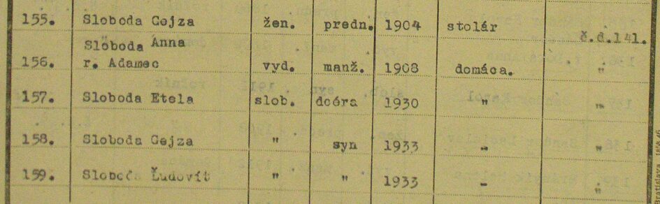 A tágabb család több tagját is hasonló sors érte. A szűk családon kívül kitelepítették Géza unokatestvéreit, Klebercz Károlyt és Macsiczáné Klebercz Esztert, továbbá Szloboda Lajost és Jolánt is családjaikkal együtt. Ugyanerre a sorsra jutott nagybátyja, Szloboda Kálmán is.