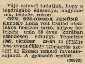 Jenő 1982-ben hunyt el, felesége hét évvel később, 1989-ben, csakugyan a nyíregyházi temetőben nyugszanak.