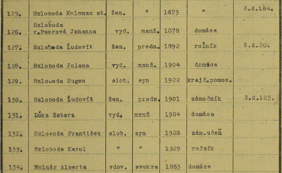 A világháborút követő csehszlovák megszállás következményeként a magyarellenes jogfosztások a Szloboda családokat is elérték. A Benes dekrétumok alapján vagyonukat elkobozták és kitelepítésre ítélték szinte a teljes családot. Egyedül az ifjú Kálmán maradhatott Rétén.
