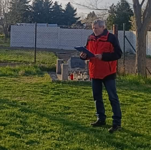 Az alapiskola udvarán található, az ismeretlen katonák emlékére felállított emlékműnél a megemlékezés egyik kezdeményezője, Tomovics Miroszláv üdvözölte az összegyűlt emlékezőket.