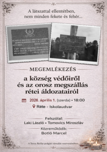 A Terra Rethe polgári társulás megemlékezést szervez 2026. április 11-én, szombaton 16:00 órakor a rétei kultúrházban az elüldözött és kitelepített réteiek emlékére. A megemlékezés keretében…